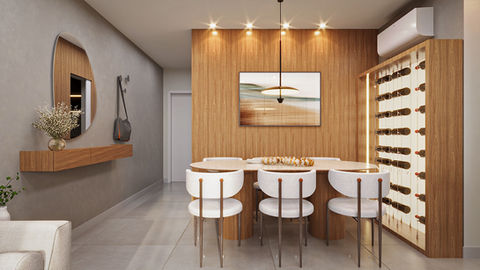 Este espaço integrado é o sonho de quem valoriza praticidade sem abrir mão da elegância. A cozinha gourmet com ilha central funcional é perfeita para receber amigos.